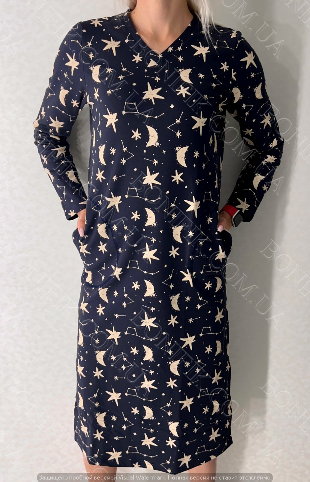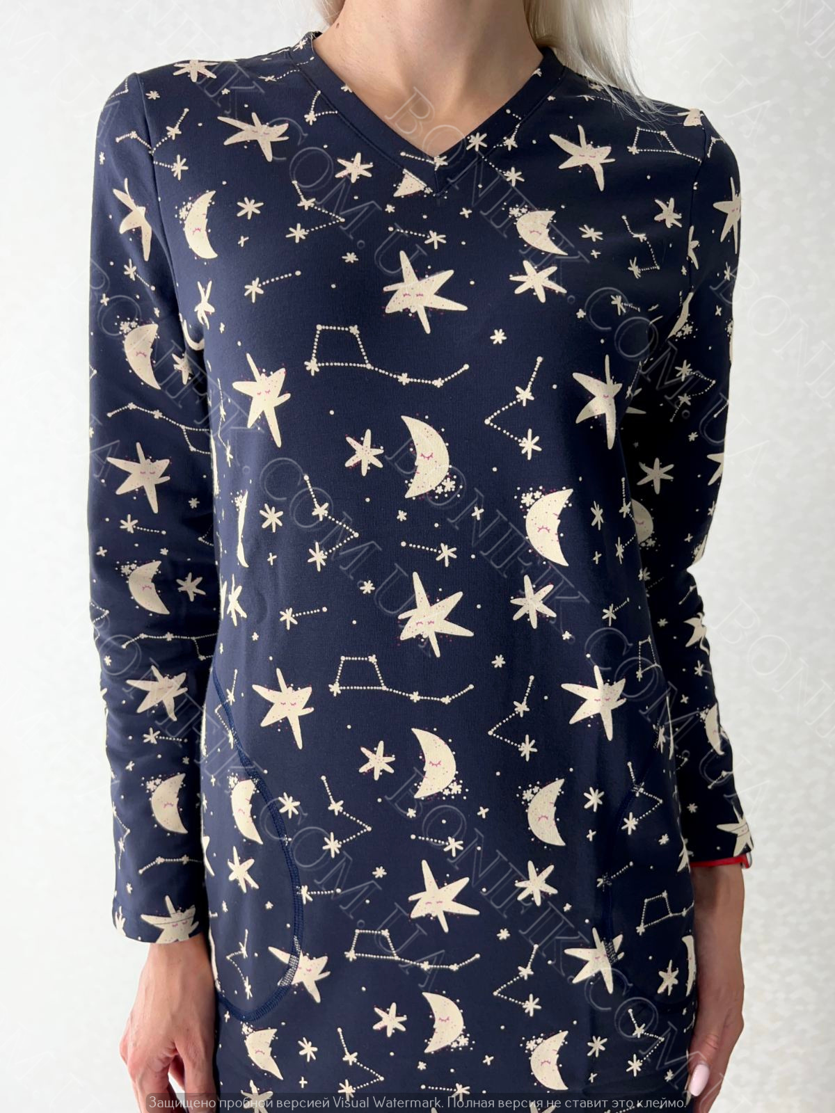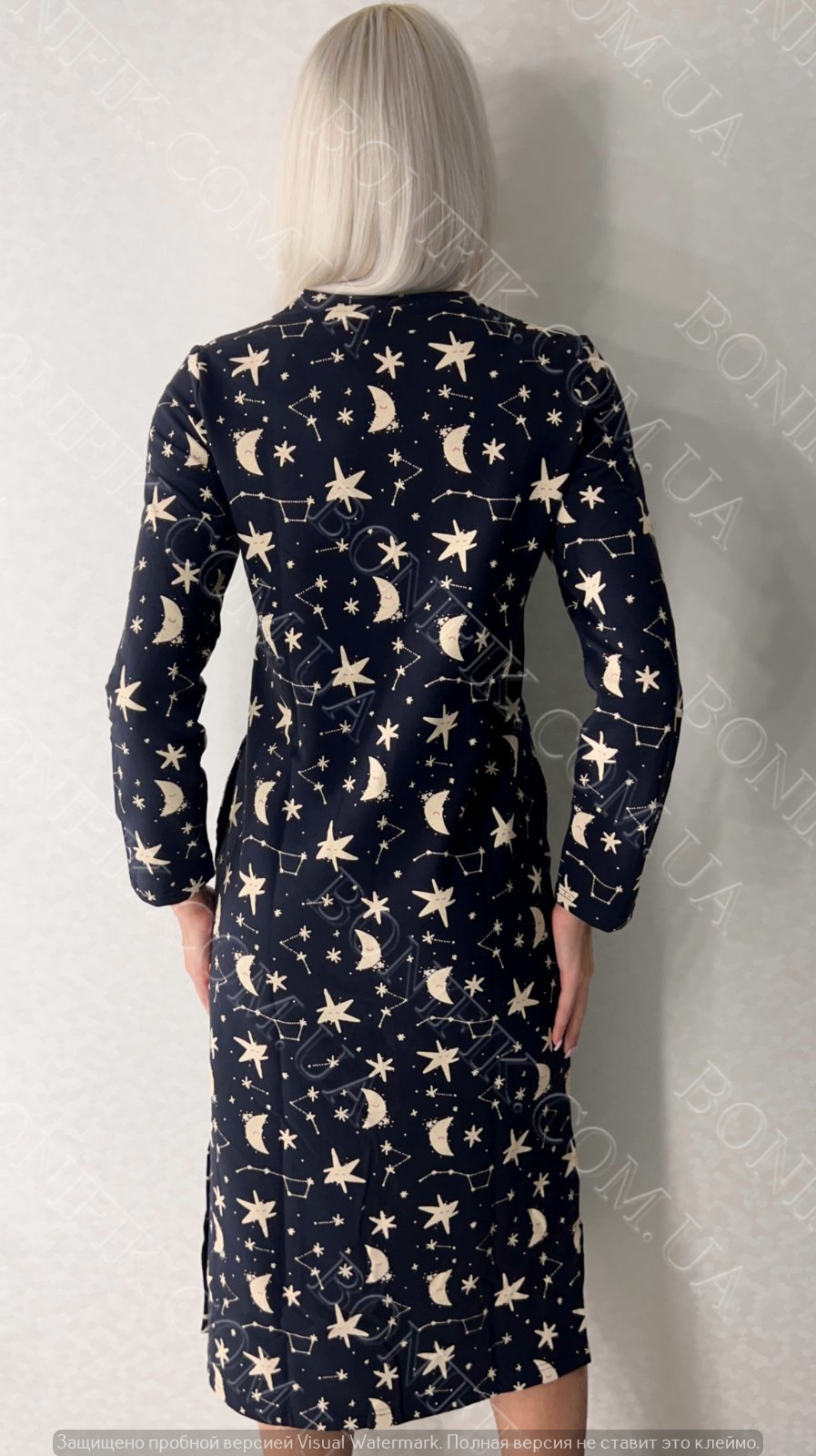 Нічна сорочка вільного силуету, виконана в чорному кольорі з принтом "напівмісяць та зірки".