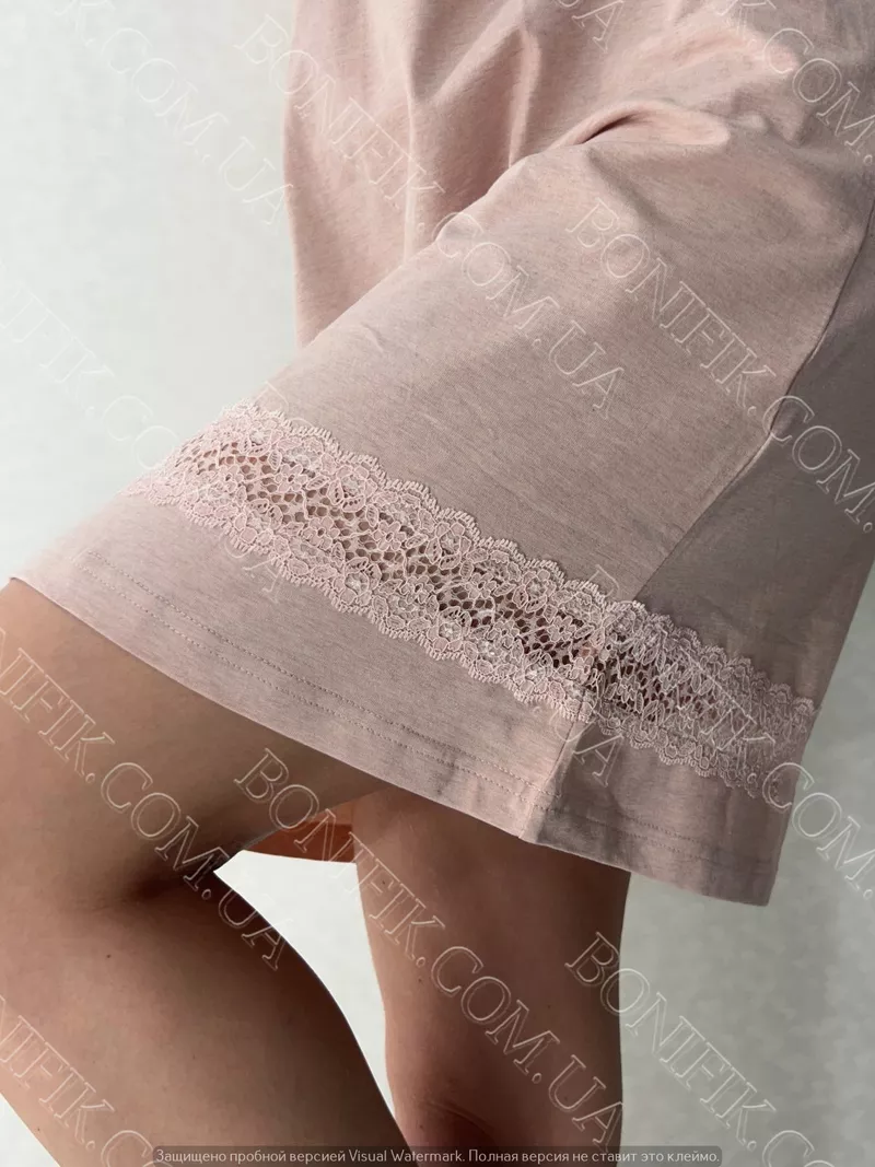 Нічнушка виготовлена із рожевого бавовняного полотна з додаванням еластанової нитки.