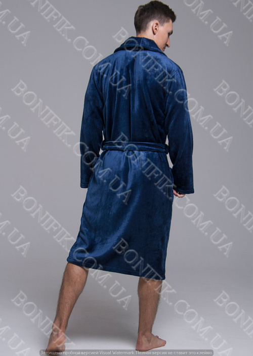 Чоловічий синій халат велсофт з поясом (90055) (арт. 1202)