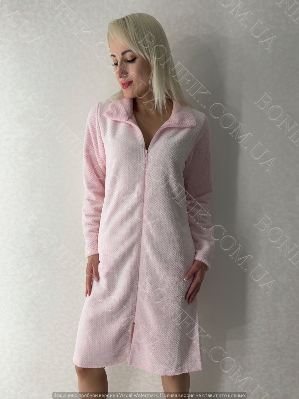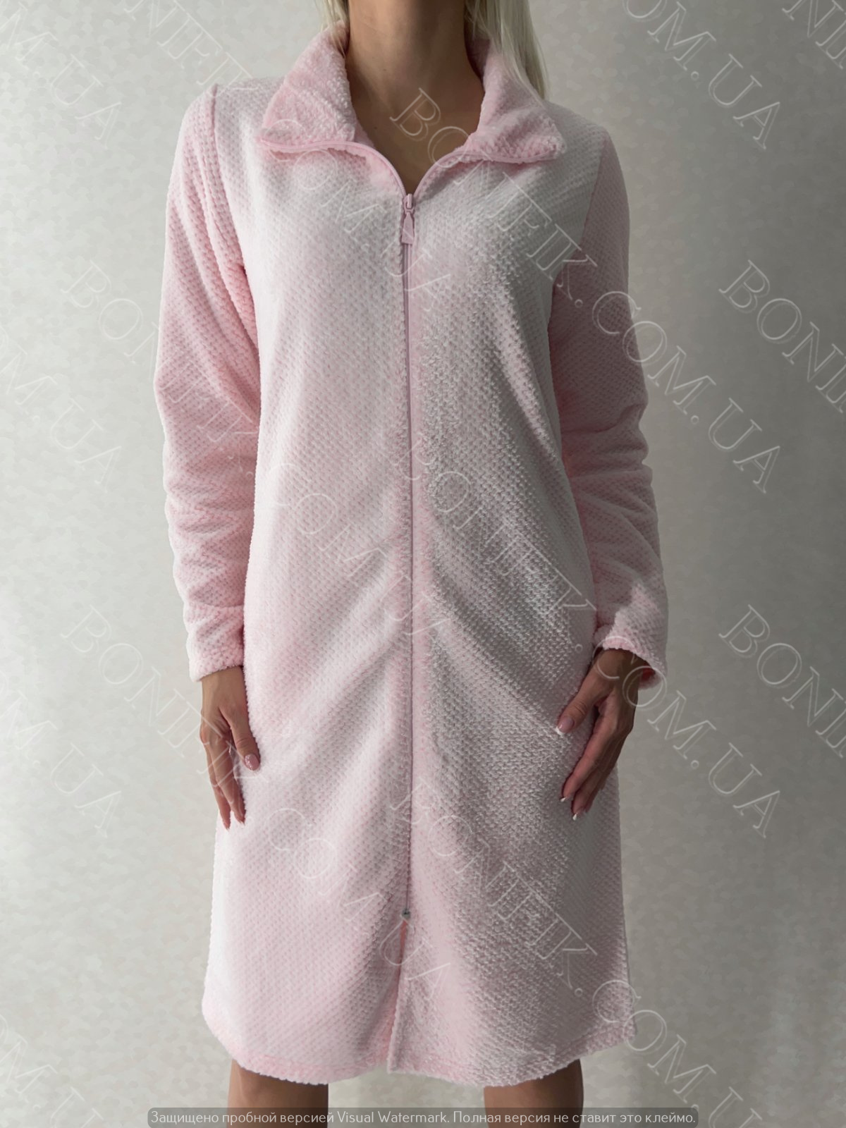 Ніжно-рожевий халат из велсофта на блискавці створений для тих, хто цінує затишок, м'якість і максимальний комфорт в домашньому одязі.