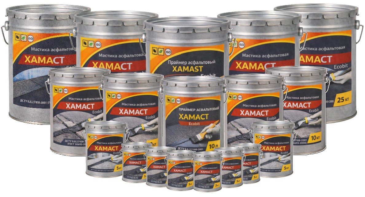 Мастика асфальтовая ХАМАСТ Ecobit ДСТУ Б.В.2.7-108-2001 (ГОСТ 30693-2000), металлическое ведро 5, 10, 20 л