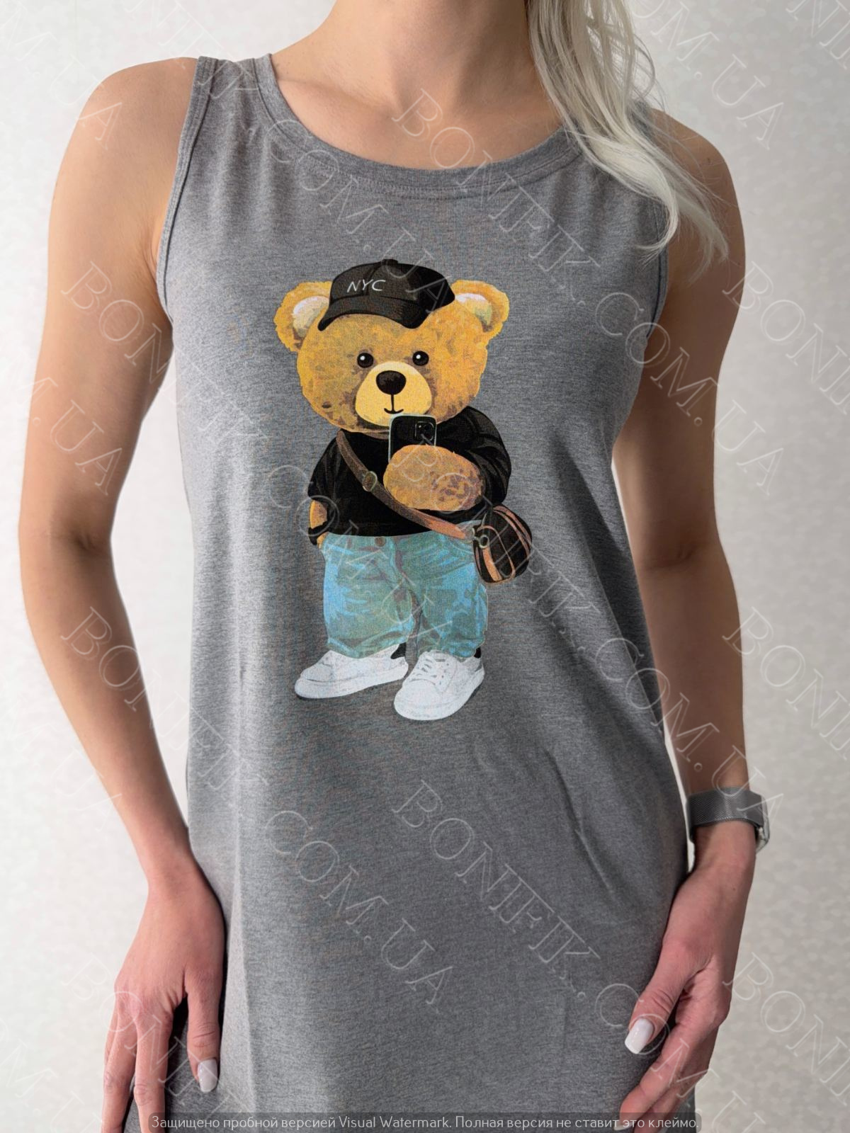 Особливу увагу привертає оригінальний принт з модним медведиком в міському стилі — він додає образу грайливості, актуальності та індивідуальності.